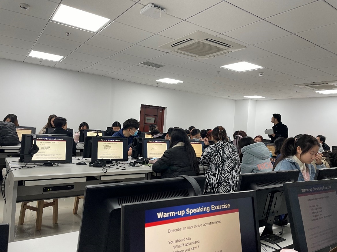 教学副院长杨红燕的组织下,英语系13位教师在东区教学综合楼A0603教室集体观摩了冯迪老师的“基础英语视听说3”课程。该课程同时还吸引了其他专业的2位老师前来观摩。