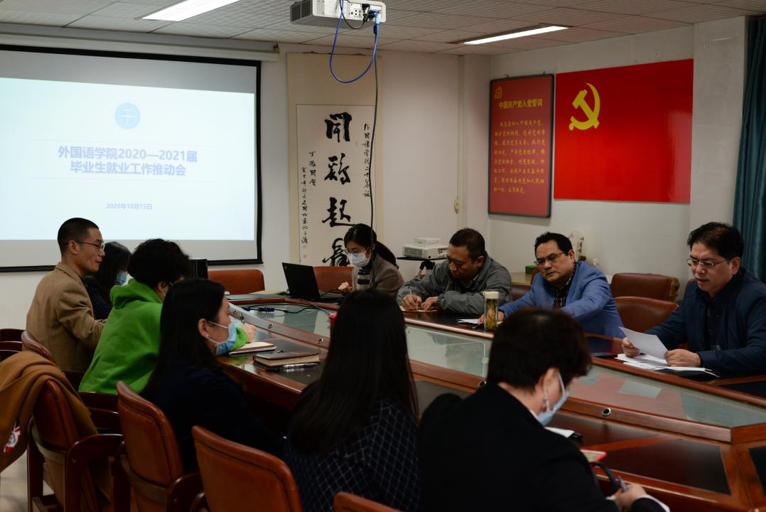 工作的头等大事,继续花大力气推动就业工作。二是要聚焦问题、全员合力,全院老师都应充分发挥作用,针对当下学生就业思想问题,进一步凝聚学生共识。三是要发展学生特色、强化人才张力,要认识到英语专业学生的特点,进一步彰显特色,并引导学生发挥专业优势,强化在就业市场中的竞争力。