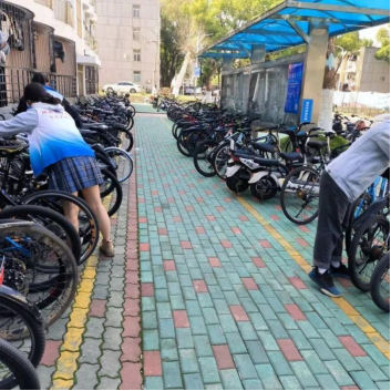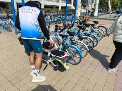 的志愿者们以热情饱满的精神面貌、昂扬向上的青春姿态、认真细致的工作态度、无私奉献的意志品格,积极投身于清理校园、整理共享单车的服务工作。