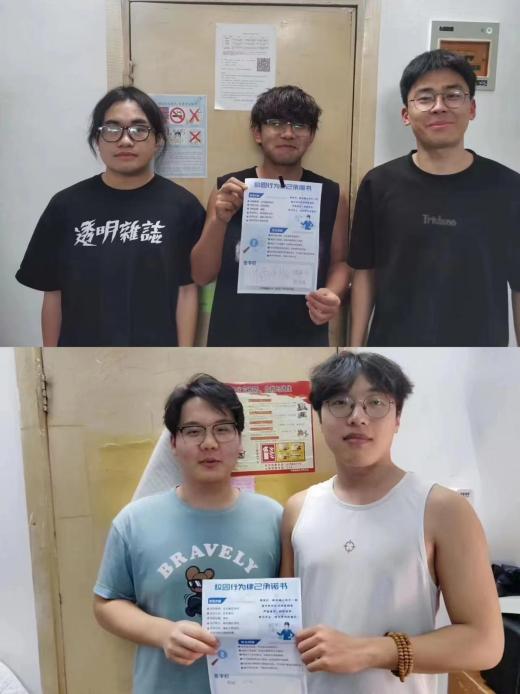 各班同学踊跃参与本次活动,校园律己行为承诺书发放到寝室后,同学们以寝室为单位进行承诺书的研读和学习探讨,明确了新学期学习生活律己要求,熟读每一条反诈提示与安全建议,进行了深入的反思与学习,并郑重的在承诺书签字栏处留下签名。