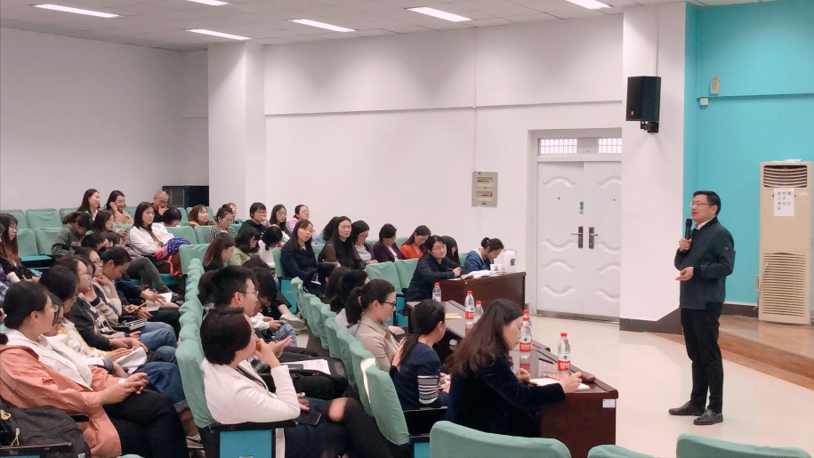 张伶俐教授。讲座主题为:跨文化交际中的问题解决策略——个案研究。全院教师和部分本科生、硕士生一同聆听了陈教授的精彩讲解。