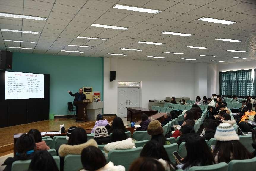 张教授首先总结了翻译批评的类型,并结合摄影、音乐和绘画理论重点阐述了文学翻译跨艺术批评的四个层次。要素层指艺术审美构成元素,如摄影的推拉摇移跟甩、音乐的高低长短强弱、绘画的点线面色形体等。结构层是外在形式设计与内在思维模式,如音乐的节奏旋律、绘画的焦点透视、摄影的拍摄角度等。原理层更多与艺术观念与方法有关,如西方强调明暗、空间表现的逼真性等,中国则更注重开合相济、虚实相生。思想层则指向诗学和文化观念。在讲述过程中,张教授旁征博引,举例囊括古今中外,多次邀请同学们一起品鉴文学翻译的魅力。讲座深入浅出,兼具学术性与趣味性,充分展示出一名知名学者深厚的人文修养。最后,张教授以文学翻译批评既需科学的理论,也需艺术的理论指导这一贯穿始终的观点作为结语。
