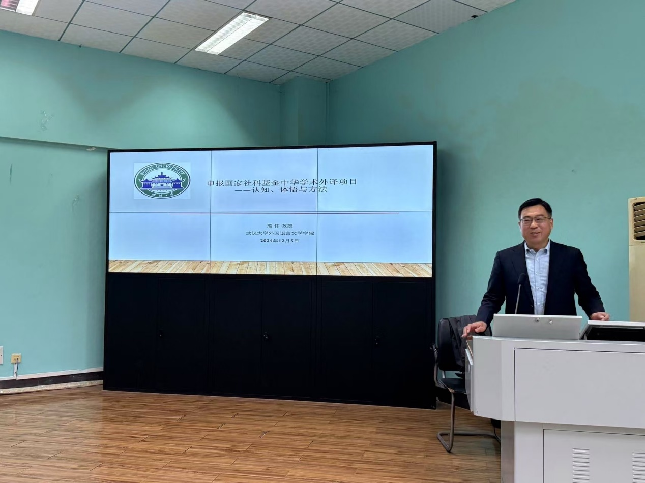 开展了主题为“申报国家社科基金中华学术外译项目:认知、体悟与方法”的精彩讲座。此次讲座由张峻峰院长主持,参会人员有相关专业老师以及全体研究生。