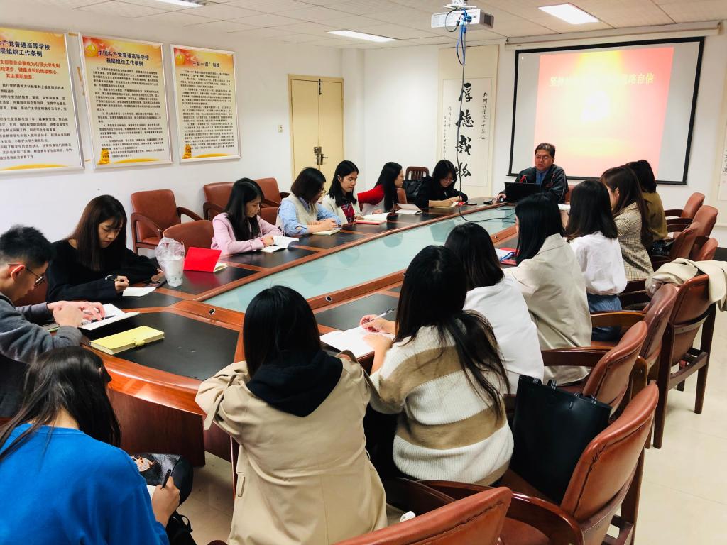 党委副书记胡文勤为全院研究生党员讲授了题为“坚持社会主义,增强道路自信”的党课。