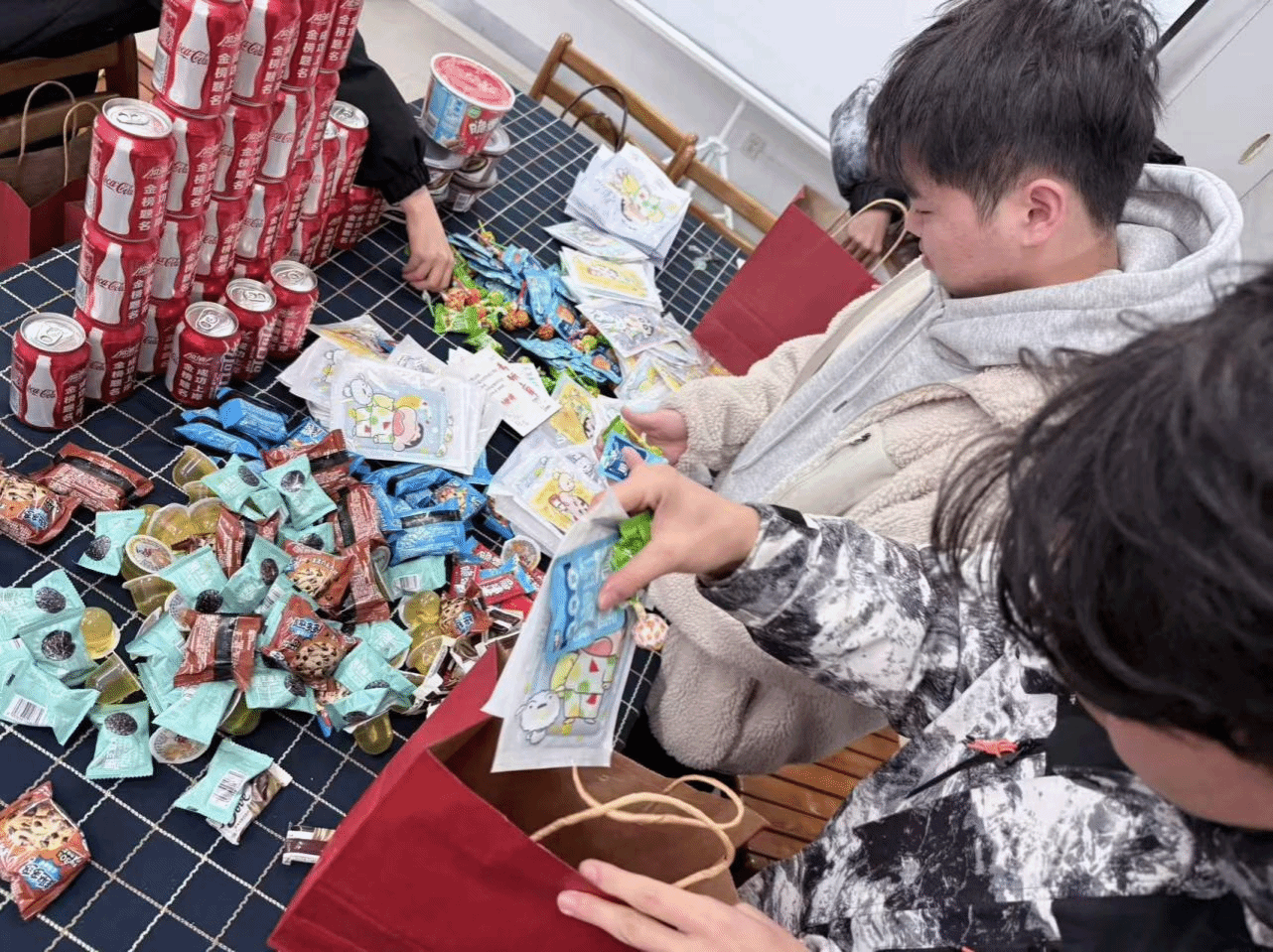 团委学生会为此次活动做了充分的准备,在北一楼110细致分装礼物,将真心打包成一个个“考研加油包”。