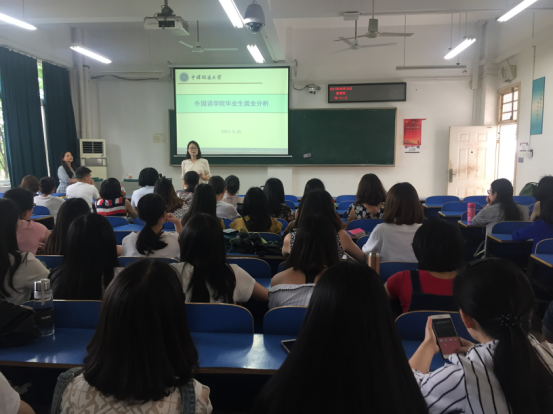 2018届毕业研究生就业动员大会在北综楼208举行,院党委副书记蒋怀柳、院研究生教育中心主任王伟,2017届毕业生代表以及全体2015级学硕、2016级学硕和翻硕班同学参加了此次大会。 蒋怀柳为2018届毕业生做了《英语专业就业形势分析报告》,从近十年Betvictor伟德官网