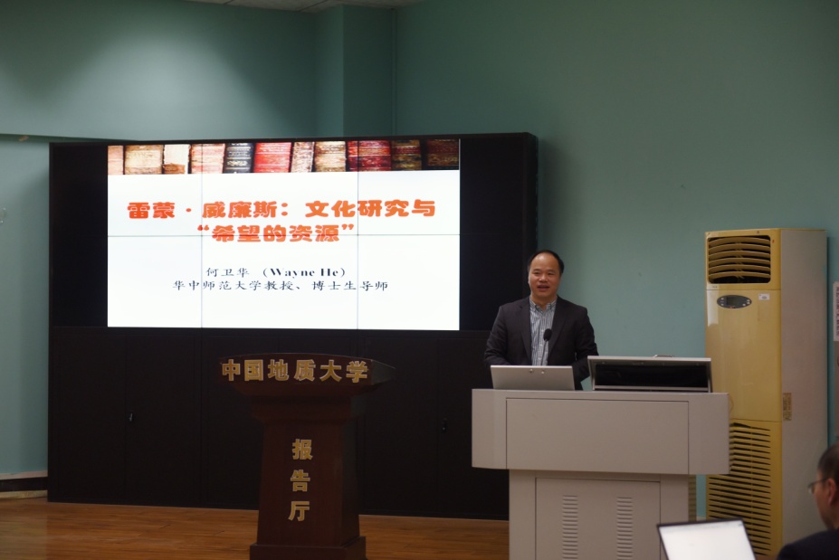 何卫华教授首先通过西蒙·多尔灵和弗雷德里克•詹姆逊等学者对文化的定义,指出文化研究不仅仅是一种审美的文学批评,而是要完成其政治使命,也就是要挖掘大众文化形式和实践中意识形态的机制。何卫华教授讨论了雷蒙·威廉斯如何看待个人与社会的关系,如何思考个人与他人的关系,以及从学术研究角度如何看待作家与其共同体的关系。他指出雷蒙·威廉斯出身工人阶级家庭,虽然后来成为剑桥大学的教授,但从精神层面来讲威廉斯是流亡者。