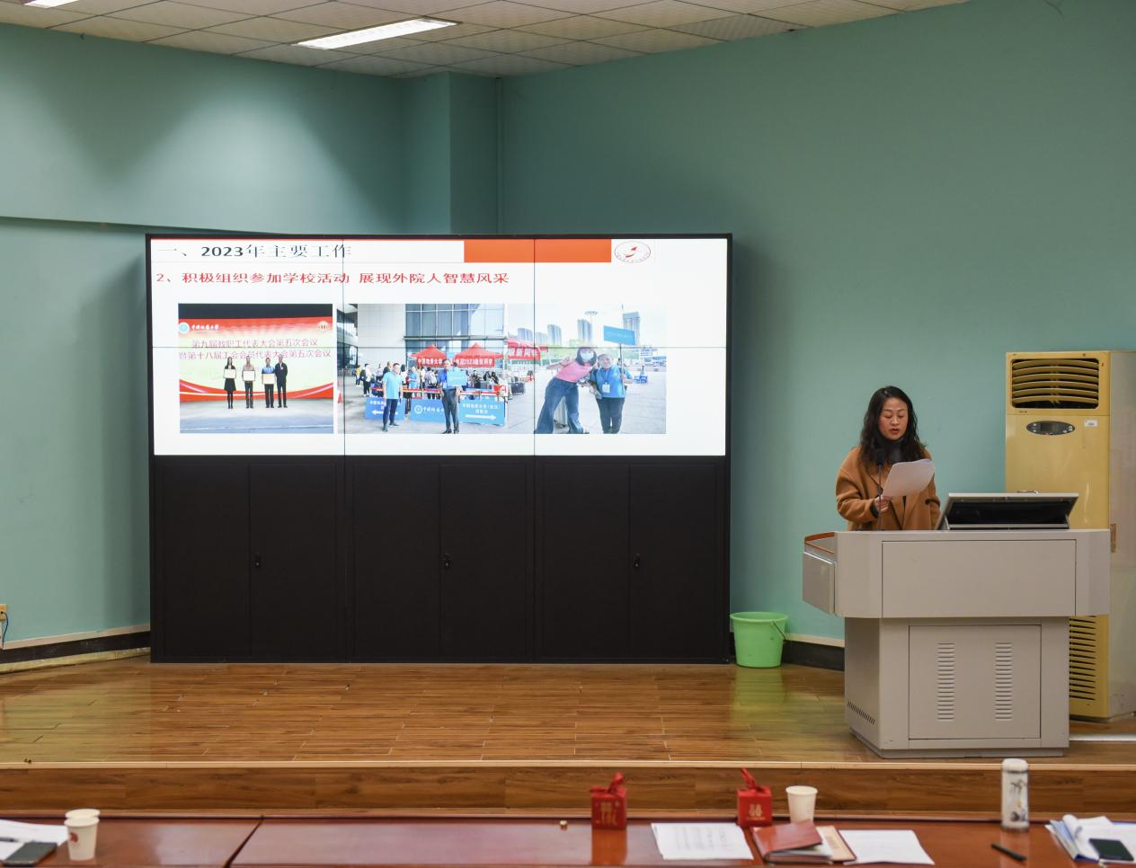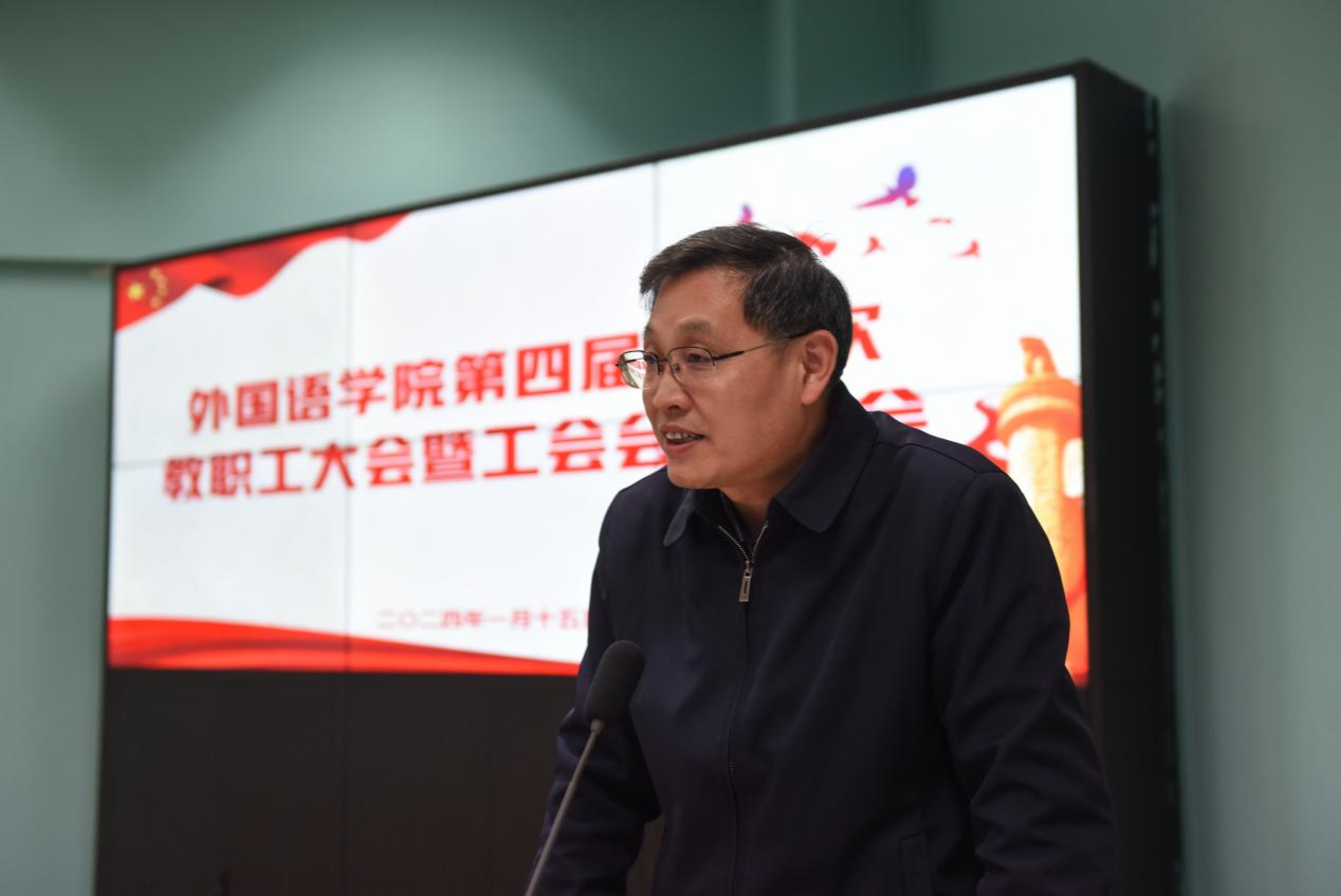 校党委副书记王甫讲话,对领导班子勇于担当作为、聚焦立德树人主责主业、努力推动高质量发展和取得的工作成绩给予肯定。他就下一阶段工作提出三点要求:一是加强理论学习,不断提高人民教师的责任感和使命感,通过抓支部、抓活动、抓好政治巡察整改,把大家凝聚在一起共谋发展,要守牢意识形态红线、安全底线;二是以高质量为主题,不断提高人才培养质量和贡献力,要抓教学团队、导学团队,做好未来教学成果奖的谋划,鼓励教师通过参加教学比赛提升教学能力,以教师为主体、全员参与,打造“中西文化节”活动品牌;三是有组织地谋发展,做好科研、社会服务及融入学校国际合作战略等方面的增量。