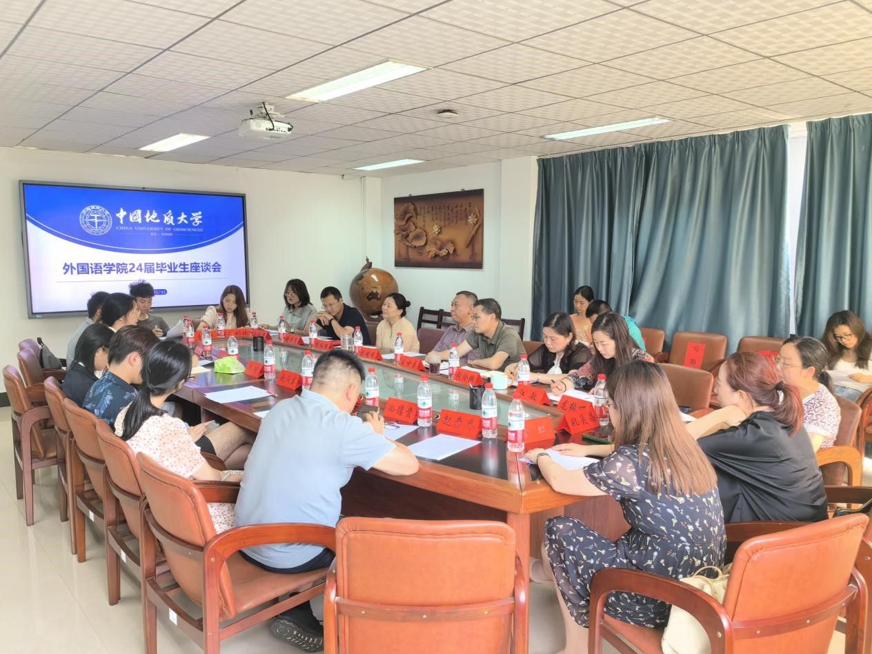 在北一楼344会议室举行2024届毕业生座谈会。院领导刘世勇、张峻峰、杨红燕、张伶俐,英语系主任江敏、姚夏晶,二外部主任龙绚丽,Betvictor伟德