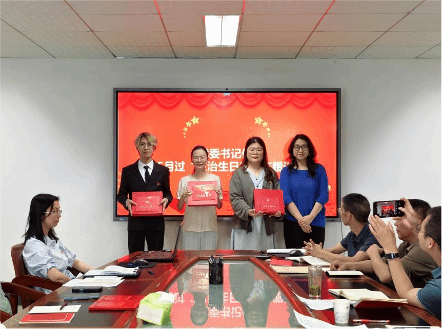 在学生党支部“我为群众办实事”月度好案例评选环节,支部全体党员分享他们在学习、生活中为师生办实事、解难题的点滴和感悟,经支部民主评选,陈晓红和毛欣如组织就业分享会和语言志愿服务的两个案例被评为五月“我为群众办实事”好案例,院直党支部宣传委员董成见同志为获奖同志颁发证书。