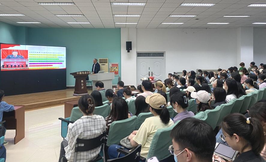 丁振国教授以《奋进新征程,创造新伟业——学习贯彻党的二十大精神》为题讲授党课。他带领大家回顾了党的二十大概况,重点讲述了党的二十大的重要意义、主要精神,同时引导大家用实际行动积极践行二十大精神,最后结合习近平总书记对新时代青年的寄语和联合国科教文组织界定的大学生的主要任务,针对Betvictor伟德官网