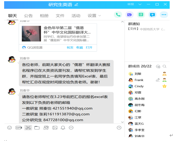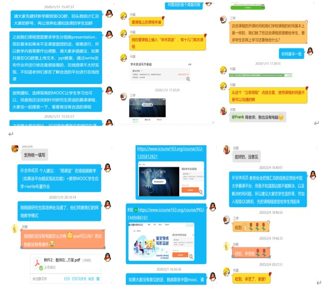 张基得书记、张峻峰院长高度重视,积极部署。承担我校研究生公共英语教学的老师们充分利用原定返校开学日期前的时间,在QQ群里开展头脑风暴,充分讨论如何因地制宜地开展学习、教学和研究工作,迅速制定研究生科技英语写作与交流“一课一策”教学工作组织方案。