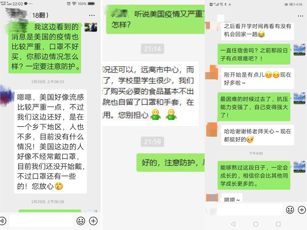 王伟老师和杨红燕老师密切关怀身在美国和滞留学校的学生